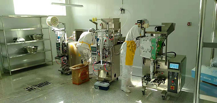 北京呀咪呀咪食品有限公司車(chē)間-液體調(diào)料包裝機(jī)(左)-調(diào)料醬自動(dòng)包裝機(jī)(中)-全自動(dòng)調(diào)料粉劑包裝機(jī)(右)應(yīng)用現(xiàn)場(chǎng)
